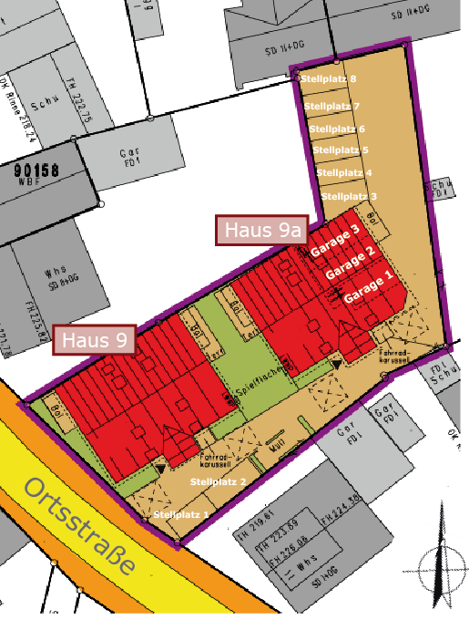 - 3 Garagen und 8 Stellplätze, Fahrradabstellplätze