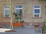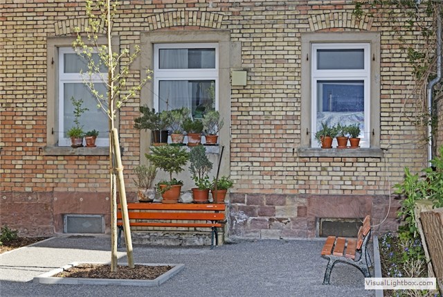 Im großzügigen Hofbereich bestehen Abstellmöglichkeiten für Fahrräder, Müll- und Wertstoffbehälter sowie ein „Verweil- bereich“ für alle Bewohner. Die ursprünglich vorhandene Gewerbefläche im EG wurde in hochwertigen Wohnraum umgewandelt und die Fassade danach stilgerecht umgestaltet.